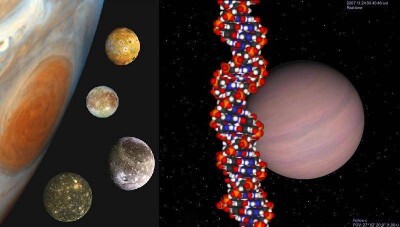 We live in a universe that is fine-tuned for the emergence of life. In 2002, Lord Martin Rees, Emeritus Professor of Cosmology and Astrophysics at the University of Cambridge published his book, Just Six Numbers, referring to six numerical constants in the physical world. A few examples of these constants are: the mass of the proton (Mp), the mass of the neutron (Mn), the speed of the light (c) and the Newtonian gravitational constant (G). There are many more examples. These are all calculated numerical values based on measurement of the physical world. If any one of these six constants changed even slightly at the beginning of time, then the stars, galaxies, and ultimately, life would not exist. We would not be here. The amazing thing is that this fine-tuning of the universe is also expressed in all living things. Next, we explore the fine-tuning in the molecular biology of the cell. (1) Header Image: Jupiter’s four largest moons, known as the Galilean satellites. From top to bottom, the moons shown are Io, Europa, Ganymede and Callisto. NASA planetary photojournal, borders removed by Daniel ArnoldPlanets with DNA. Courtesy of wikimedia commons. The DNA is in public domain, courtesy of wikimedia commons.