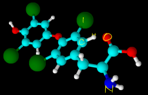 Left image chemical structure of levothyroxine courtesy of wikimedia commons
