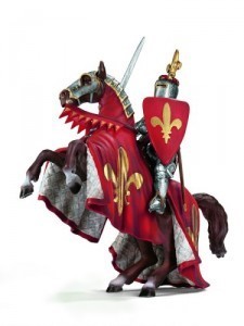 Okay…so you know I'm just so random sometimes, right? Well, yesterday I was thinking about The Crimson Knight (I have to admit to you that anytime some asks me for a list of my favorite heroes from my own book, The Crimson Knight always is right up there at the top. I'm not sure why.), and I realized that after almost two years, I still have the Shcleich Knights sitting on my bookshelf that I used as references for Sir Broderick's "look!" Now, although none of the figurines look just like Sir Broderick, his horse, armor, etc. did…I thought, "Maybe someone would like to have a little piece of The Crimson Knight!" Therefore, the weird, random blog contest for the rest of this week is this: A Schleich Knight used as a reference while I was writing A Crimson Frost! Yep! The very one sitting on my shelf! Corny, I know! BUT if you like stuff like this (which I do and would like to have the whole Shcleich Knights collection someday), why not jump in, just for fun? I figured you needed a break from Elvis for a couple of days (Plus…I have to think of another Elvis thing!)…so why not start your own Shleich Knights collection, or just have a fun little thing to give a child, or stick on your shelf! Hmmmm…I'm thinking this would make a great bookend now that I'm looking at it again!