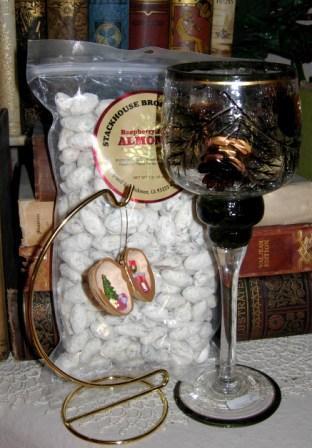 Shall we have another contest this week, ladies? Hmmm…I think so! How about…hmmm…let me think a minute! Oh! I know! How about a one pound package of Jesse Bryant's Raspberry Almonds?! Yeah? Let's do it! Just post here…let's see…post your favorite thing about Take a Walk with Me and I'll draw a name later this week! The winner will receive a pound of the Raspberry Almonds that so so soooooo inspire me! I only have a photo from one of last year's contests to show you…but it gives you an idea of what the almonds look like! They are sooooooooooooooooo delicious! You'll never be the same!