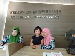 Pada hari kamis tanggal 11 April, 2019, aku dan bapak pergi ke Kecamatan Mustikajaya untuk wawancara Ibu Camat, tapi sampai di sana, Ibu Camat tidak ada, jadi aku wawancara dengan Ibu Apriyanawati, sebagai petugas administrasi. Aku memulai wawancaranya: