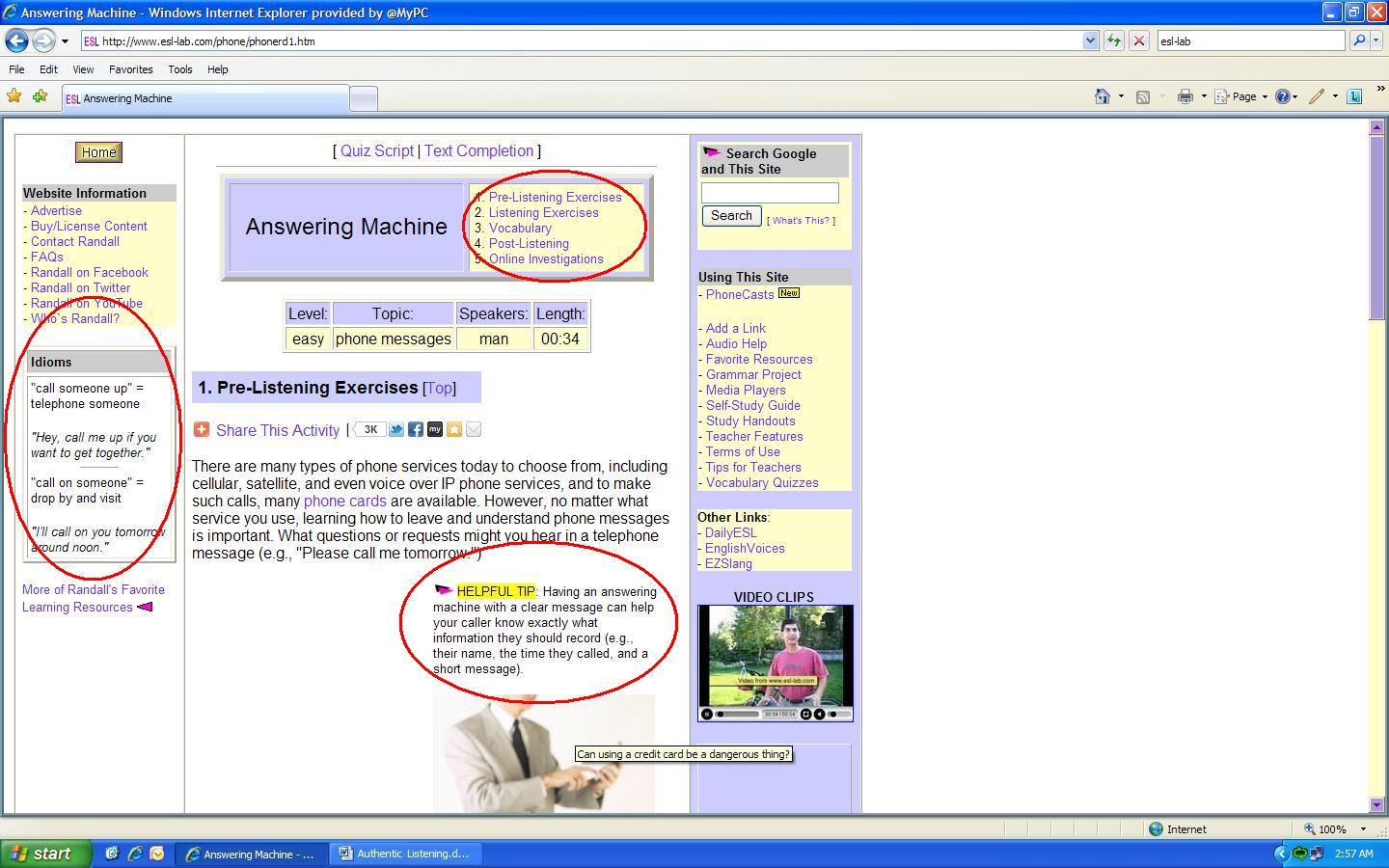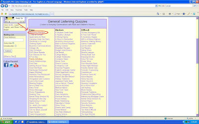Namun, jika kamu tidak bisa terlalu lama koneksi internet, kamu bisa mencopy 'Listening Exercise'-nya, mengunakan Real Media atau Window Media. Caranya dengan klik kanan dan 'Save Link As'. Karena sistemnya mengkopi bukan mendownload, jadi kamu tidak perlu khawatir menunggu terlalu lama.