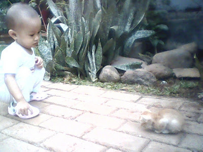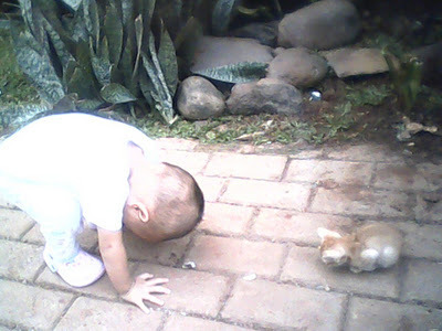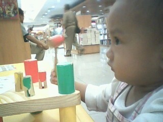 Nada, my one-year-old daughter, scooped food in the bowl to the floor. Her mother shook her head and said, "Smart girl."