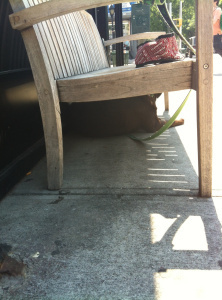 It’s just so darn out right now that this morning I observed this chocolate Lab hiding in the shade beneath the bench at Starbucks while his owner was indoors purchasing ice coffee. I should mention that it was 8 AM when I took this picture, and it was already over 90 degrees.