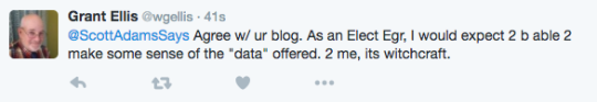 Non-scientists don’t have the tools to form a useful opinion on climate science. What we usually do instead is look at one side of the debate, ignore the other side, and use confirmation bias to harden our illusion of certainty. That’s how normal brains work. So if you are both normal and you have a strong opinion about climate science, I can say with confidence that you are hallucinating about your certainty.