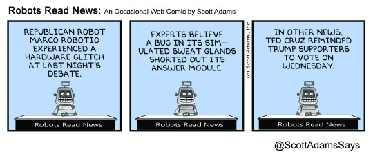 There is no evidence that the vote count was rigged, although opportunity and human nature pretty much guarantee it. But it probably doesn’t matter because Cruz’s dirty tricks thwarted Trump’s win, and that was the main objective of the establishment. So now we have the odd possibility that the GOP was planning to fix the vote count but didn’t need to do so because Cruz did it for them. I have no evidence for that idea. I just think it is likely, given the existence of motive, opportunity, and a huge upside gain. In those situations, corruption is universal.