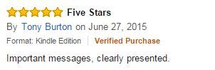 Winner of the brevity award goes to Tony Burton for reviewing my book on Amazon.