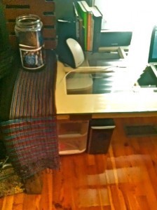 I’d also like to thank my friend Courtney Gibson for the table runner from India that now gracefully covers up the edge of my broken desk. I’m sure it will serve as a good reminder for me.
