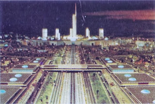 Later, Disneyland would get into the act. The most famous example was the Rocket to the Moon attraction. Lessor known was Space Station X-1. From The Disneyland Story: The Unofficial Guide: “At a time when the first satellite to orbit the Earth was still a couple of years away, Walt thought it would be fun to give guests a bird’s-eye view of the world from a “platform in space.” That was the concept behind Space Station X-1. Claude Coats and Peter Ellenshaw painted an aerial view of the United States based on the first photograph from space, which was taken on October 24, 1946, from an altitude of 65 miles. In this case, they moved the perspective up to 90 miles in space and painted the scene on a doughnut-shaped canvas. Guests stood along a railing and looked down at the painting. The lighting changed from daytime to nighttime, and the painting was illuminated in black light. The platform moved from the East to West Coast in 3 minutes.78 Over the years, the name would be changed to the Satellite View of America, but that was not enough to draw guests, and it closed on February 17, 1960.”