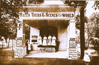 When Star Tours opened at Disneyland in 1987, little did the Imagineers know that they would create a new industry. The breakthrough attraction combined a motion simulation base with a film and a story to create an immersive environment that feels like you really are moving. It was not long before others would jump on the bandwagon and soon almost every shopping mall in America had such a device.But was Star Tours the first such ride? Step back to Kansas City in 1905 to Electric Park, an amusement park so amazing that it would become one of Walt Disney’s fondest childhood memories and an inspiration to Disneyland. One of the hit attractions was Hale’s Tours and Scenes of the World. George C. Hale, a retired fire chief, developed the attraction. The show was set in a railway car that seated seventy-two guests. At one end was a screen. Projected on the screen was a ten-minute film whose point of view was that of a camera mounted on the front of a moving train. This was known as a phantom ride. During the show, machines would rock the rail car from side to side, fans would blow, and painted scenery would pass by the windows. There was a special mechanism mounted on the undercarriage to recreate the clacking sound of the tracks. Whistles, bells, and live conductors added to the illusion.