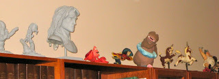 Those fortunate enough to visit the Disney Archives on the lot of the Walt Disney Studios in Burbank have seen this remarkable collection of maquettes. A maquette is a small scale model that is used by animators to make sure that a character's proportions most closely match those of the 2d drawings. They have the ability to see the character from a variety of angles and to remain consistent to the character design.