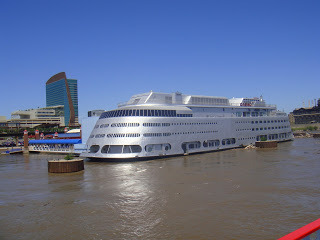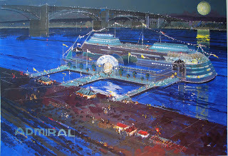 If you ever thought that DisneyQuest at Walt Disney World seemed like a white elephant image what the management of Six Flags thought when they tried to do something really different in St. Louis, Missouri with the SS Admiral. In 1933, investors in St. Louis decided to build a 300-foot state-of-the-art riverboat on top of a barge that was built in 1907. Designed by Maizie Krebs, a fashion illustrator for a St. Louis department store, the boat’s Art Deco look cost more than $1 million.