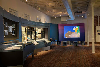 One of the most dramatic architectural moments comes when you enter Gallery 8 “Walt and the Natural World.” As I stated earlier, the museum is contained within the old Army barracks building. However, Gallery 8 and 9 are part of a new 20,000 square foot addition. As you enter the gallery the familiar globe from the True-Life Adventure series greets you. Along one wall are televisions playing clips from the series. On the other wall is a floor-to-ceiling glass window with one of the most spectacular views of the Golden Gate Bridge you will find anywhere.