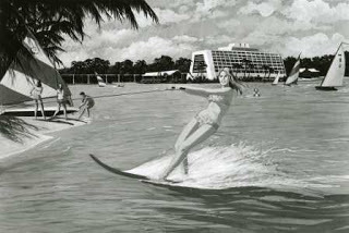 Walt Disney World was alway meant to be more than just a theme park. It was designed to be an all-inclusive resort. One of the major amenities was the variety of water recreational opportunities including sailing, boating, fishing, and water-skiing. The Disney built Seven Seas Lagoon would extend “the existing lake into a three-mile pleasure waterway, dotted with natural and man-made islands.” The Resort promised, “aquatic spectacles and sports, while at the same time retaining its often spectacular beauty.” The “lake and lagoon have already been lined with broad, sandy beaches for sunning and swimming.