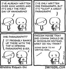 [image error]Every year is the same thing, the challenge to write a novel in 30 days of 50,000 words or more. But is it really the same thing? In my three years doing Nano I can attest that it's never the same experience, even if you're meeting with the same people. So like every experience you take something out of it and I'm going to share my lessons from this year.
