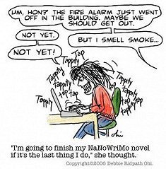 Write-ins are your friends - I don't think I would have made it this year without the write-ins and the support from my Pandas (Atlanta's wrimos) There were days I couldn't write being overwhelmed with other responsibilities, and writer's block rode on my back all month, but you get to a write-in with the mindset that during that block of time is to focus on Nano, and you also talk out your hurdles and everyone pitches in, it was