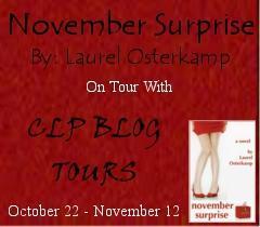 Thanks to Laurel Osterkamp for stopping by with a Q&A and excerpt from November Surprise. Please visit her tour page on CLP Blog Tours for more information and a giveaway!