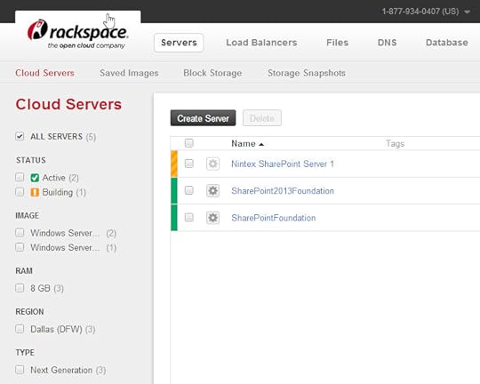 After I created the new workflow and started it on a list item titled Nintex SharePoint Server 1, I could see the new server building in my Rackspace Cloud Control Panel like below.