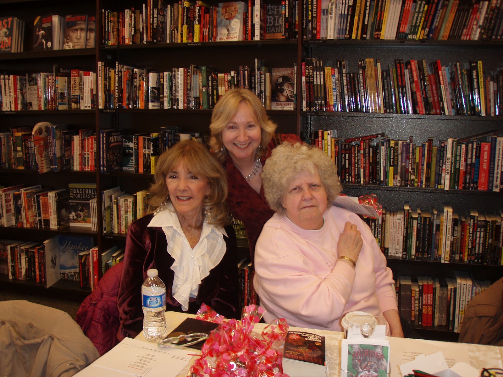 Elf Ahearn (back) Charmaine Gordon (left),and Janet Lane WaltersIt was a positive experience. Shoppers stopped by to say hello even the non-romance readers. A few men braved a hello. My favorite was a teen boy into Manga telling us we were cool.