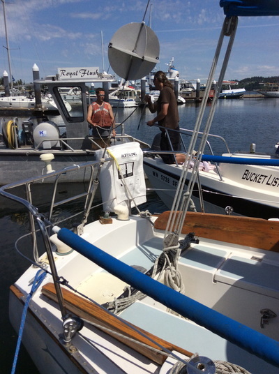 At last it was time to give up. Fortunately, a nice man in his bilge pump boat came over and towed us back to our slip, while we hummed the theme from GILLIGAN’S ISLAND. As we limped back someone remembered that it was Friday the Thirteenth. Well, that explained it.