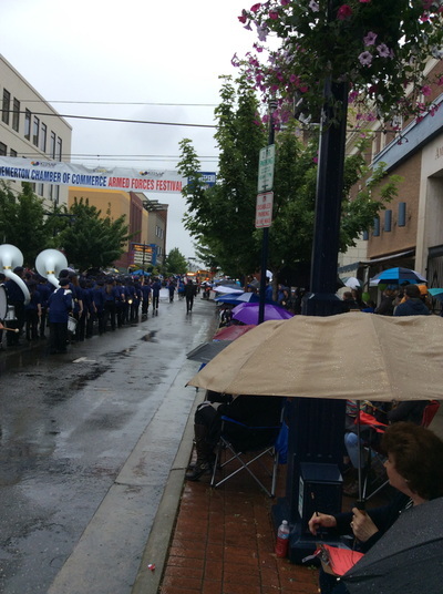 Still, all branches of the armed forces came out and every high school and middle school band dutifully braved the rain and cold to play for us. Service organizations, city officials - everyone was there. It was so great to see such a huge turnout considering what a cold, rainy day it was. Still, everyone was in a festive mood.