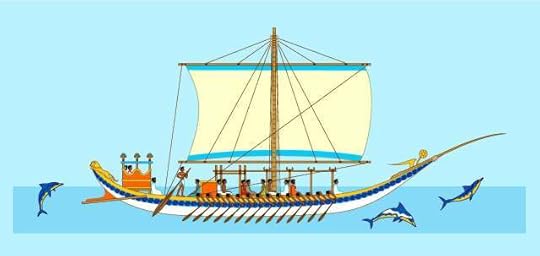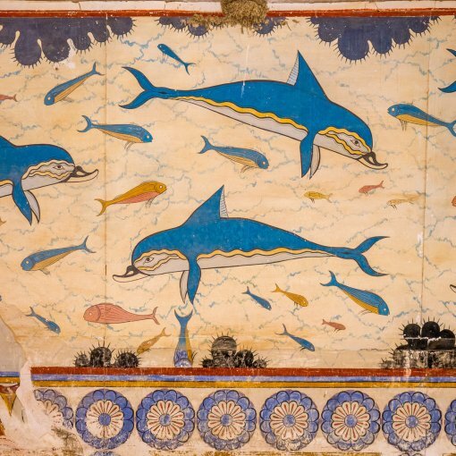 A Minoan Ship with Dolphins. Vector Drawing done in the style of a Minoan Fresco by GregSm. Source: iStock.