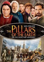 Poster advertising the 2010 TV miniseries based upon the novelAs everyone knows, PILLARS OF THE EARTH is a huge novel that takes place in England over a 50-year period from about 1121 to 1172. The novel begins and ends in violence: It begins with the hanging of a mysterious young man who sings a chanson before they string him up. It ends with the hanging of a thoroughly evil and despicable character as if the author is telling us that this hanging atones for the first one. At the end, as a coda, one of the main characters punishes the King of England for his part in the murder of Thomas à Becket.