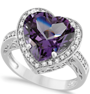 He looked at me for one moment, as if considering. Then he smiled. “Of course, you shall have your ring.” He drew out a velvet box from the inner pocket of his waistcoat. Inside was a ring with a purple stone surrounded by diamonds. He placed it on my finger. “This is an amethyst surrounded by diamonds.