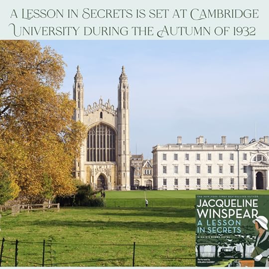 A LESSON IN SECRETS finds Maisie Dobb’s career as PI taking an exciting new turn when she is recruited by the British Secret Service to pose as a Philosophy Professor at Cambridge University. Her remit is to discover if there is anything going on that is “not in the interests of His Majesty’s Government.”