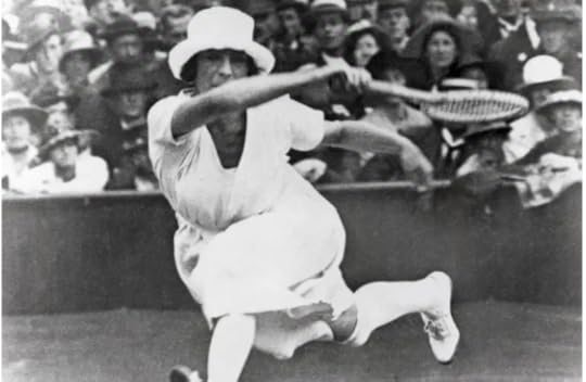 "This woman from the 1920s is still wearing a hat, but look at the way she lunges towards the tennis ball and the overarm position of her racket. There is NO WAY you can do that in a corset! By the way a journalist – I presume a MALE journalist – described this outfit as “indecent.”After World War I (1914-1918) fashion became driven by young people. Partly it was because young women had a different conception of what they needed in clothes. For example, they wanted to play a much harder game of tennis than their mothers and grandmothers with over-arm hits to the tennis ball, much like modern tennis today.