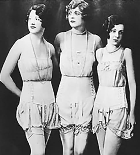 "These women from the 1920s are wearing girdles (to attach their stockings) over cami-knickers, a one-piecer much LESS revealing than today’s Teddy. Notice how much lighter their underwear is compared to the 19th century and consequently how much more natural their figures look.The post Fashions in the 1920s & 1930s: 1, from Farewell My Life by Cynthia Sally Haggard appeared first on Spun Stories.