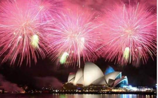 "Sydney Opera House surrounded by fireworks