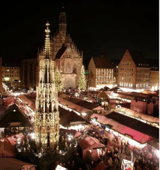"Christkindlesmarkt in NurembergMy German relatives always celebrate Christmas Eve or Weihnachtsabend (which literally translates to White Nights Evening). I thought you might enjoy a picture of people in Nuremberg enjoying their annual Christ Kindles Markt or Christmas market.