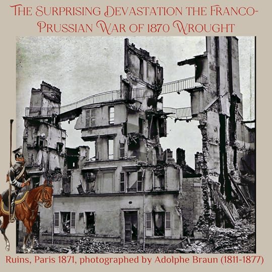 My husband’s great-grandmother, Marie Blaise, witnessed the arrival of the German army in 1870, during the Franco-Prussian war. If you look at photos of this event, you see these large German men – looking even larger under their plumed helmets – riding huge horses. To a young girl, they would have seemed terrifying. And she was right to be alarmed, for the photos of the Franco-Prussian show an unbelievable level of destruction, which is sadly all-too-familiar to us today.