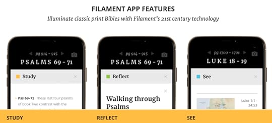 You simply download the Filament App, then scan the page number of the Bible with the camera on your phone, and voila! You get all of these features . . .