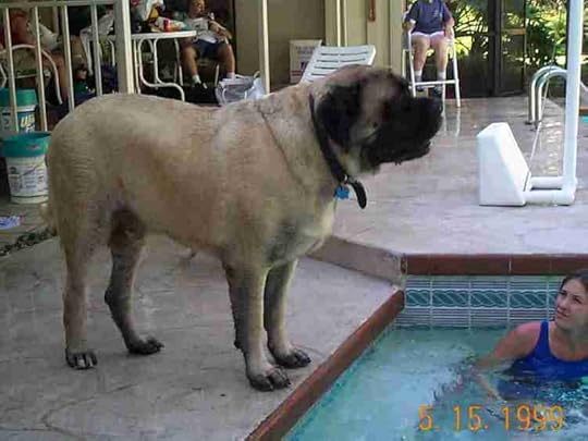 I knew all about Hercules because he was an English mastiff, and I LOVE English mastiffs. To date, we have had nine, but we only have them two at a time. In 2001, we had Sadie, who was a bit anti-social, and Justus, a 275-pound lovable hunk.