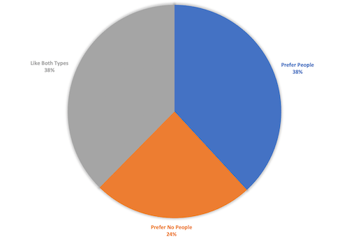 38% preferred a photo of people. 38% were happy with both types. 24% preferred no people.
