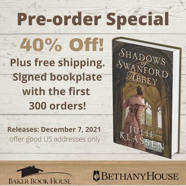 As much as I want to slow down time, I am also looking forward to an event coming up in just four weeks. The release of my next (my 18th) novel, Shadows of Swanford Abbey. My publisher has dubbed it, “Agatha Christie Meets Jane Austen,” which I take as quite a compliment as I am an ardent admirer of both those authors. The new romantic mystery is being offered at a great pre-buy discount from the lovely people at Baker Book House.