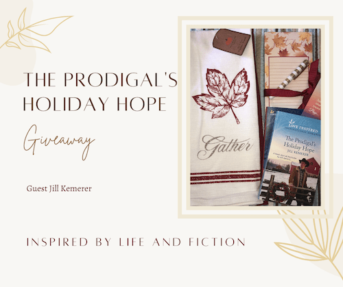 To celebrate the release of The Prodigal’s Holiday Hope, I’m hosting a giveaway! One commenter (US residents only) will receive a gift package with a signed copy of The Prodigal’s Holiday Hope, a set of Thanksgiving dishtowels and a matching notepad. If an international winner is selected, they will receive an ebook of The Prodigal’s Holiday Hope. I’ll randomly select a winner on Tuesday. Thank you!