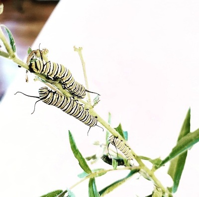 Days later, I delight in the news that monarch caterpillars endured their time with me, surviving through the change, withdrawn from the world, hidden in order to emerge into what God intended one to be, until the fragility of little wings brilliant with color press through the growth, doing their best through this short life.
