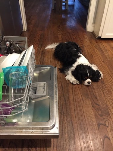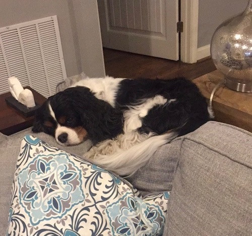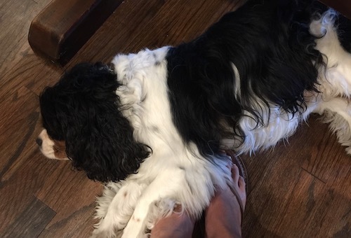 I thought I’d give you a peek into the daily responsibilities of my own Writer Dog, Sam. He’s an eight year old Cavalier King Charles Spaniel and he’s the most helpful and least high-maintenance individual in my family.