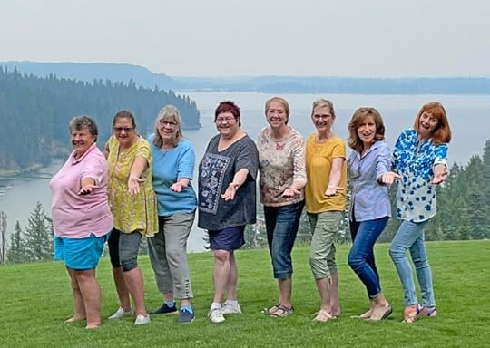 Late last night I returned from my 18th annual writers retreat in Coeur d’Alene, Idaho where, each July, I meet with ten other women to plot, to play, and to pray. What a precious time we had together this weekend. Although we dearly missed three of our number who couldn’t make it this year. Sniff, sniff.
