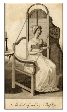 In their most basic form, silhouettes required a person to sit before a light, while a second person traced their profile on paper and then cut it out with scissors. (There were also various contraptions to aid in this process.) Silhouette-making was a craft many amateurs enjoyed doing themselves, as shown in this brief excerpt from The Bride of Ivy Green: