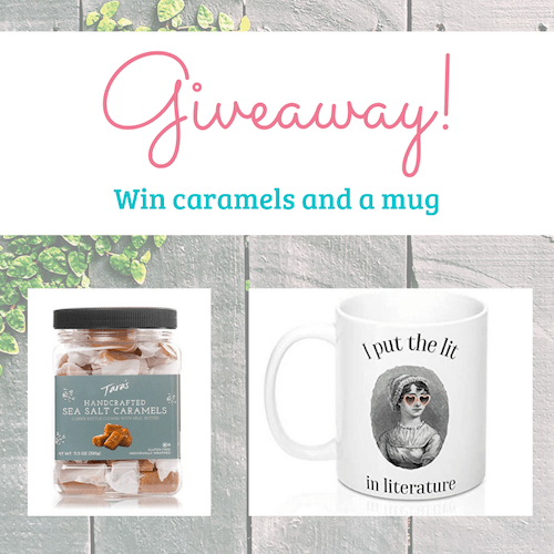 I’d love to hear your thoughts on the cover shoot and runner-up covers!I’m truly grateful for my readers! To thank you for supporting my books and following me on this blog and via social media, I’ve put together a giveaway. One of you will receive an 11.5 oz jug of sea salt caramels and a fun Jane Austen mug. Simply enter via the form below. USA only please. Best of luck!
