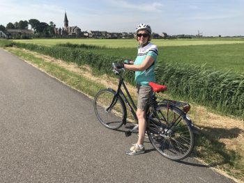 Naturally, bicycles play an important role in “Chasing Shadows.” Lena de Vries relies on her bicycle to travel from her farm to the nearby village, often with children perched on the handlebars and rear fender in true Dutch fashion. Her daughter Ans rides home from her townhouse in Leiden to visit her family. Later, Ans uses her bike for her dangerous work with the Dutch Resistance. I traveled to The Netherlands to research this book, and my husband and I rented bikes in Leiden to ride out into the countryside like Ans would have done so I could research settings for the de Vries family farm.