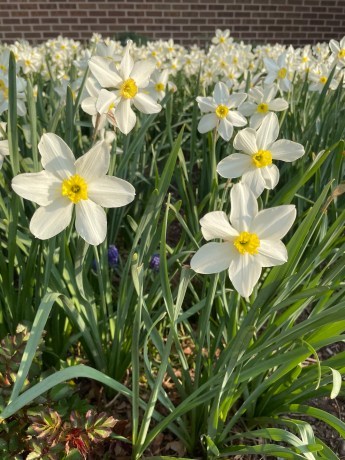 Spring has arrived in Indiana, and I am loving it! Spring has always been my favorite season, and this year I’m delighting in discovering flowers and their simple beauty as I walk on campus or in our neighborhood. Maybe spring is my favorite because it starts days before my birthday. Daffodils were my birthday flower, so it is delightful to walk by this patch of beauties when I arrive on campus each day this week.