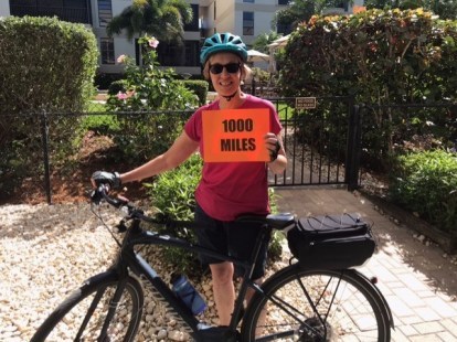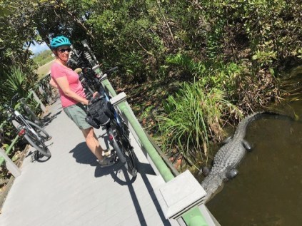 But this past month we’ve been vacationing in Florida where we finally reached the 1000 mile mark. Some of the trails took us through an alligator habitat where I made a new friend.