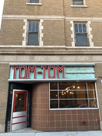 I was delighted to get to walk through it during a second open house. The developer who bought it is committed to restoration, not gutting it and making it ultra modern. The Tom-Tom Room was a coffee house during WWII, and there’s a scene it in during the book. You can begin to get a sense of what it might have looked like in the photo below. The external sign had been covered for years, and has been revealed during the early stages of restoration.