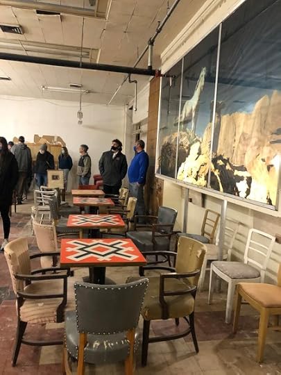 And this is an image from the inside. The White Horse mural had been covered up, but is now visible to everyone who goes through. The developer’s plan is to open the restaurants and have storefronts before restoring the rooms and ballroom. (I really want to see the ballroom because key scenes happen there.)