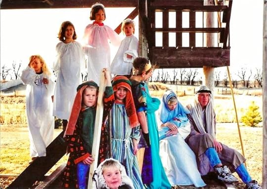 One of my favorite Christmas memories is the year my parents’ twelve grandkids created a nativity scene with the little barn’s deck standing in as a stable. Tiny Baby Jesus was played by my nephew who’d been born December 17 that year. That “Baby Jesus” got married last summer.